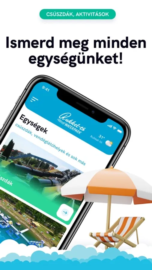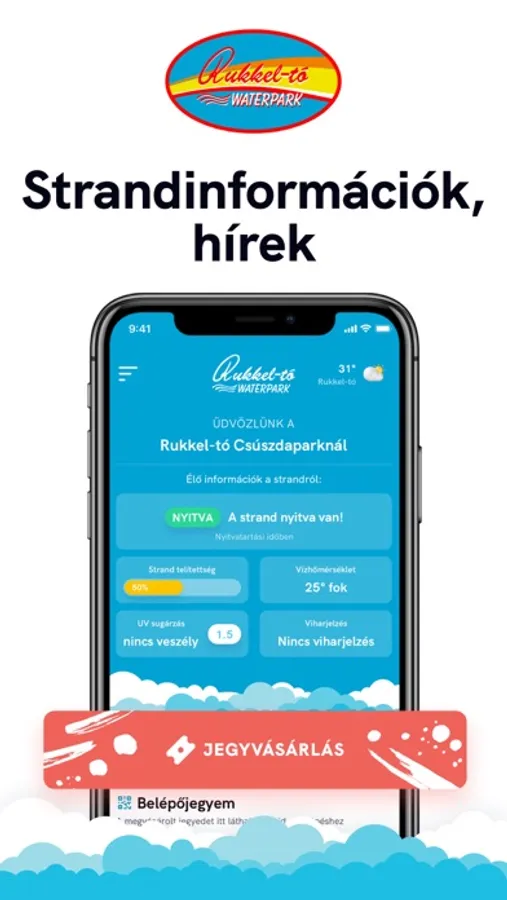 Láthatod mennyire van tele a csúszdapark, időjárás előrejelzés, vízhőmérséklet stb.