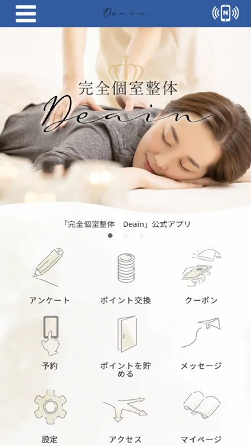このアプリでは、完全個室整体Deainの最新情報の受け取りや便利な機能を使う事ができます。