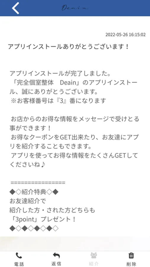 完全個室整体 DeainのアプリをSNSを通じてお友達に紹介する事ができます。
