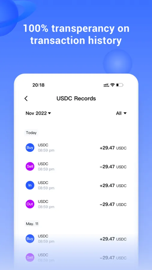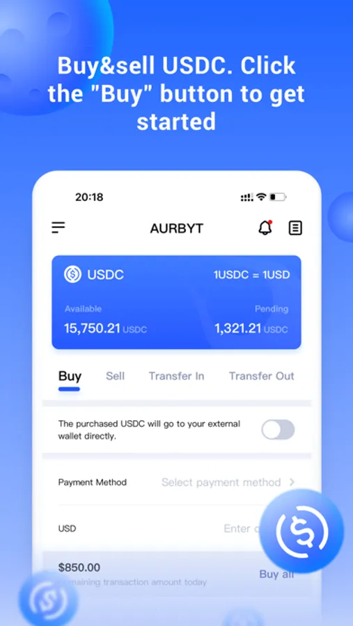 Buy, sell, and transfer in/out your digital assets, such as USDC, and the stablecoin.