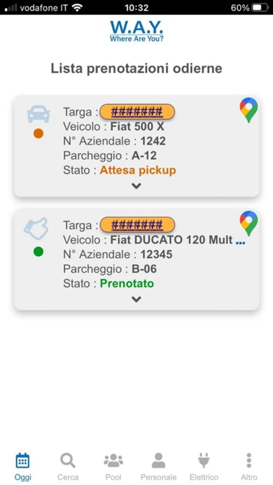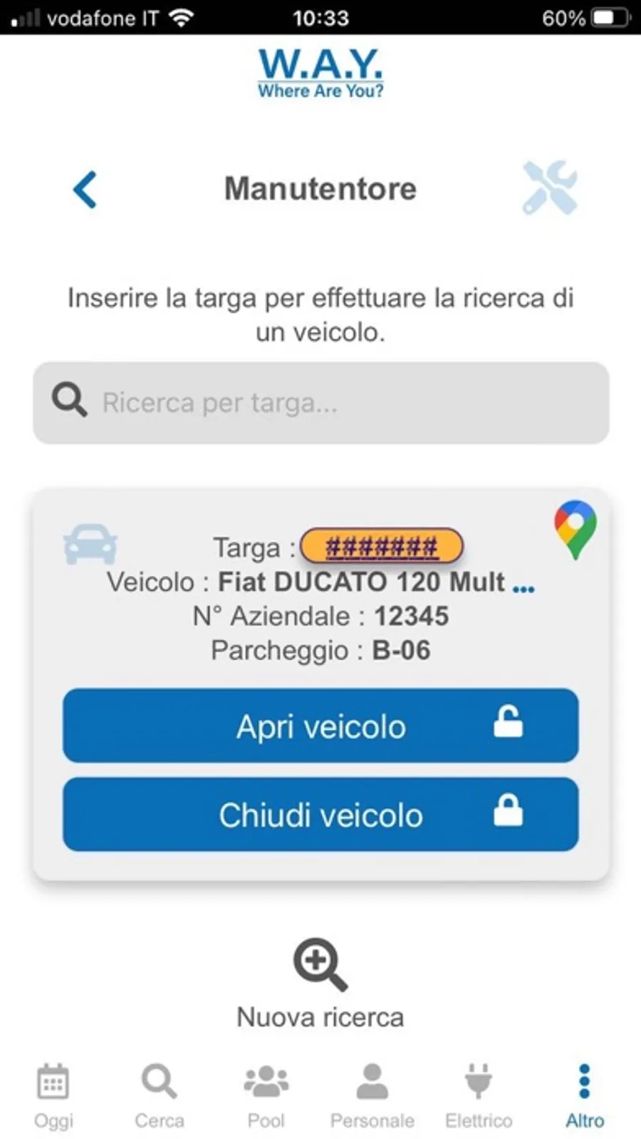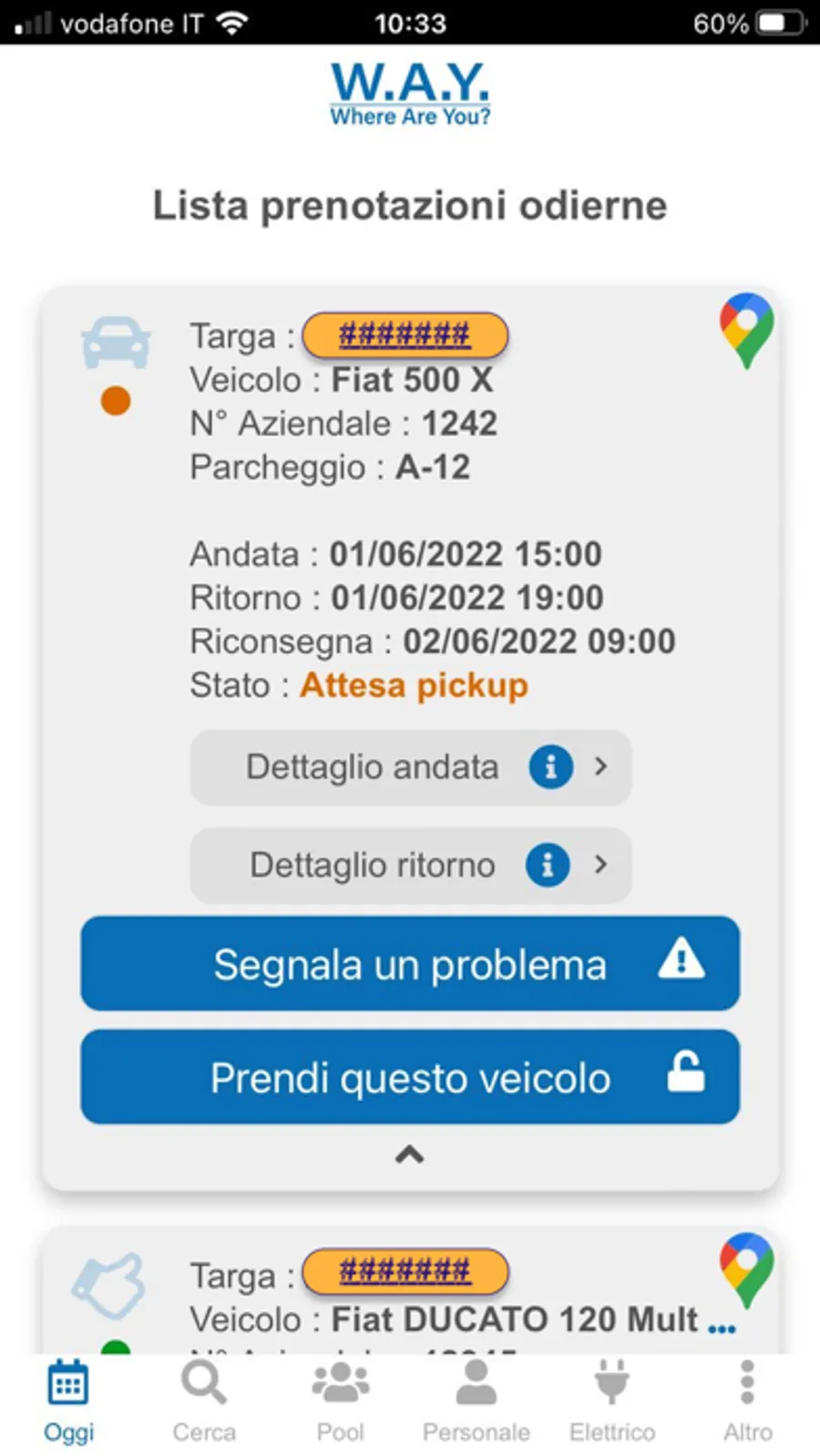 Prenotazione, apertura e chiusura dei veicoli aziendali in Car Sharing.