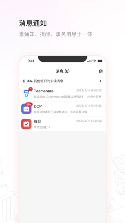 集团内全体员工可通过智能一体化移动办公平台进行高效快速的工作事务处理、多人协作办公等。