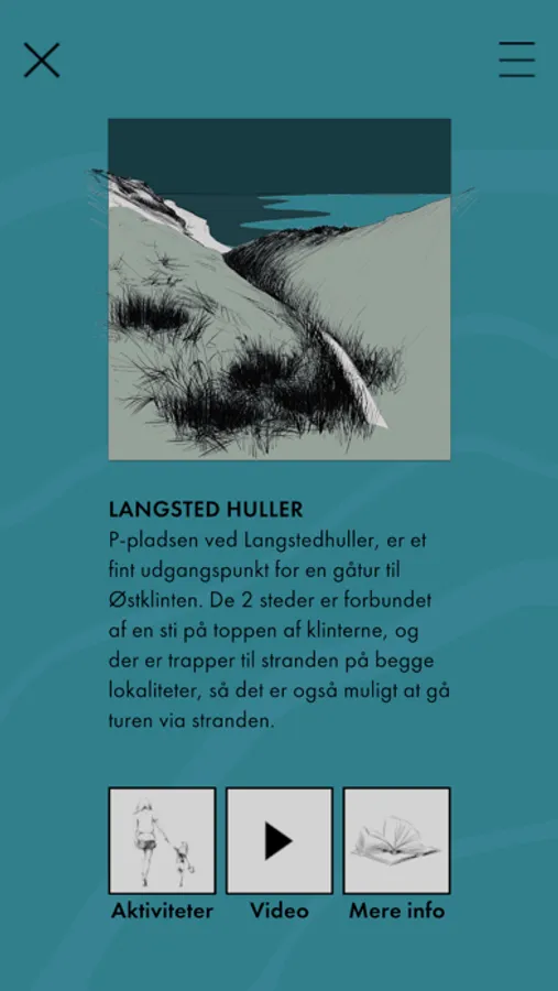 Porten til Fur guider dig til spændende og historiske steder, som du kan udforske på Fur. Hovedlokationer er markeret med en blå indikator - når du ankommer til disse lokationer, kan du udforske relevante artikler, videoer og aktiviteter om stedet.