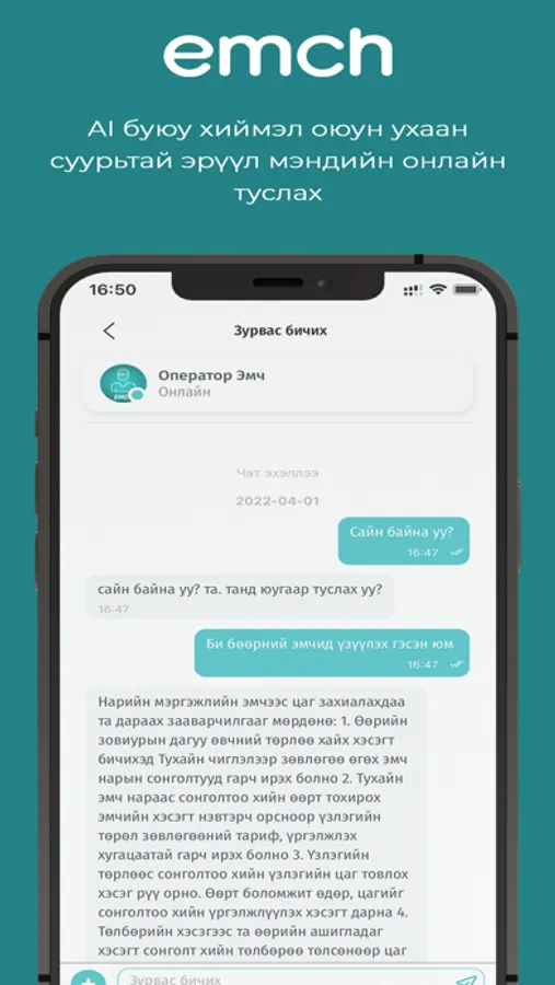 Emch Doctor нь Эмч апп-н гишүүн эмч нарт зориулсан, хэрэглэгчдийн шинжилгээний хариутай танилцан, тэмдэглэл хөтөлж, видео дуудлагаар болон чатаар зөвлөгөө өгөх хялбар шийдэл бүхий гар утасны апп юм.