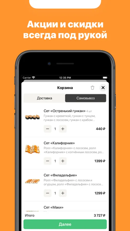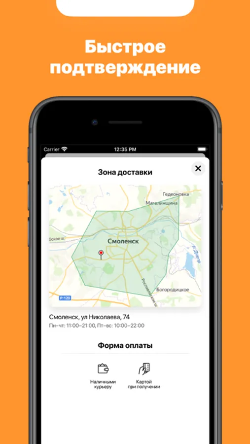 — Быстрый заказ с мгновенным подтверждением через приложение.