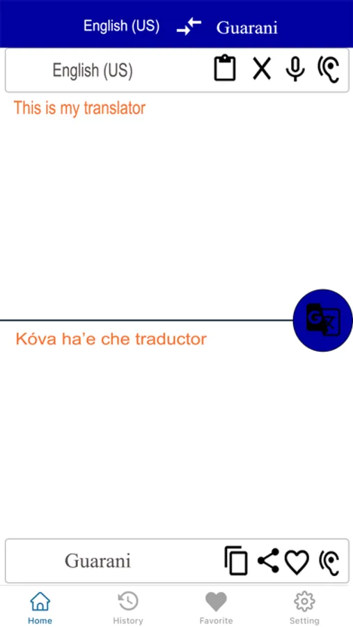 * Guarani To English Translator And English To Guarani Translation is a must have app for any traveler around the world. you will have access to the best languages packs and voice recognition in the world within your device that you can carry anywhere you go. this language app is designed for many purposes in mind including: everyday conversation, traffic signs, maps, local news, business languages, academic papers, and so on. with just a few taps on your device you will be able to understand most written and spoken words in the language you are not familiar with. it will greatly assist you in communicating with the locals.