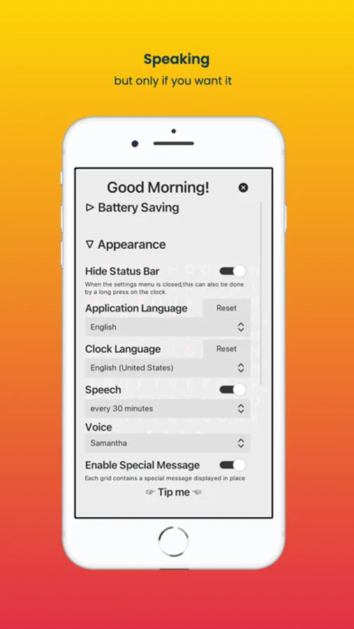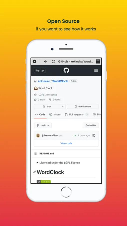 It is a simple desktop clock that displays the time in a neo-retro way in different languages (French, Spanish, British English, and American English).