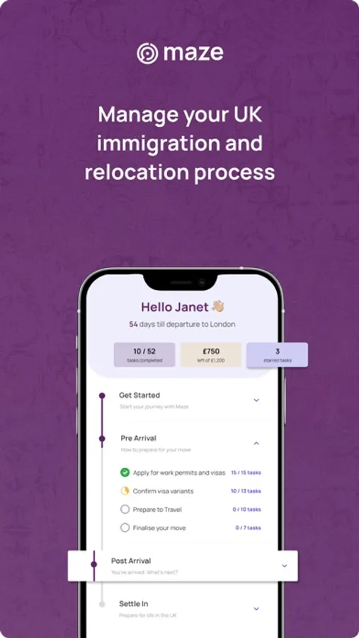 Maze App is a step-by-step support platform for your move to the UK. Maze services are designed to create a seamless transition for anyone moving from their home country to settle in the UK.