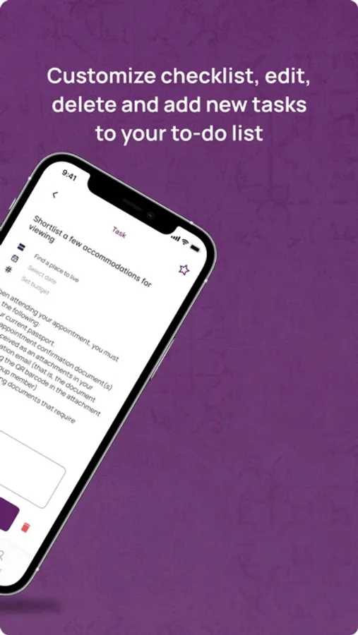 - Customize checklists, edit, delete and add new tasks to your checklist.