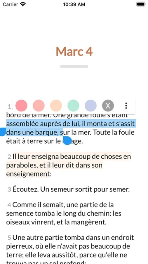 Ionul est une entreprise chrétienne et nous croyons qu'il est important d'apporter la Bible au plus grand nombre de personnes possible. Dans cet esprit, nous avons conçu cette interface du point de vue de l'utilisateur en façonnant des fonctions critiques telles que la recherche et les surlignages.