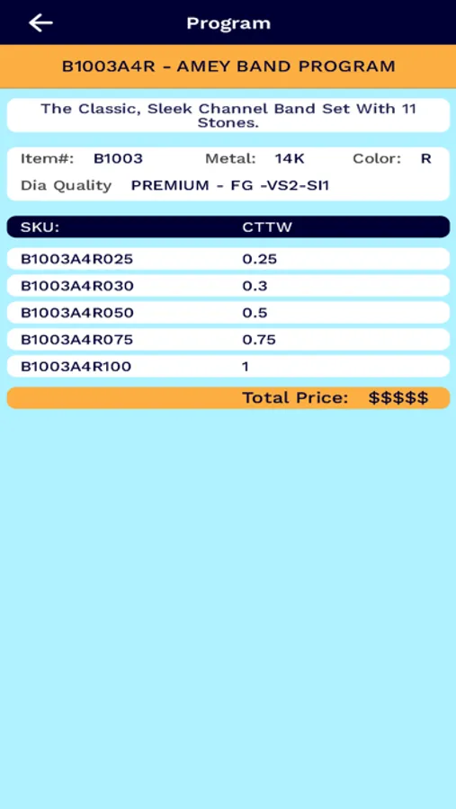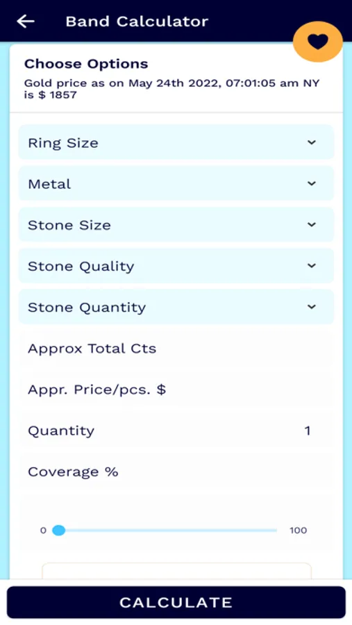 • Calculator feature: Choose Ring Size, Metal, Stone Size, Stone Quality, Stone Quantity and get an incredible result.
