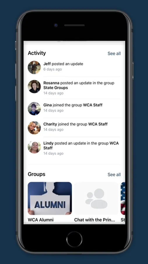 Western Christian Academy app is used to connect with teachers, join family groups, and access exclusive courses and content.