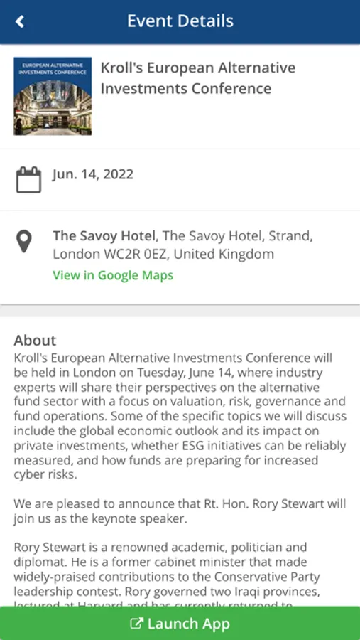 This is the official mobile app for Kroll Events. It will provide you with the latest updates about our upcoming events, keeping you informed and connected.