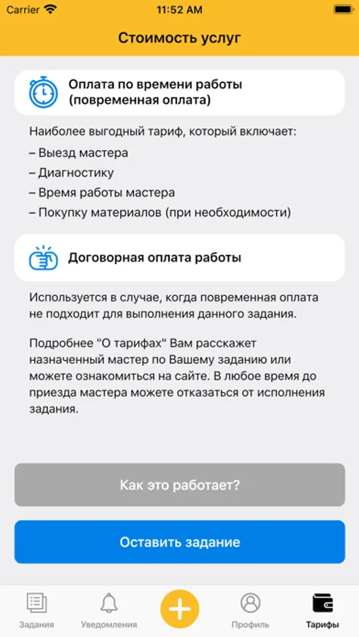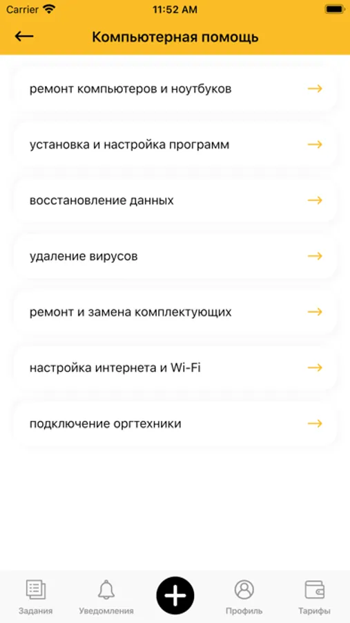 - Выбирайте категорию и оставляйте заявку, в течение 20 минут с вами свяжется мастер