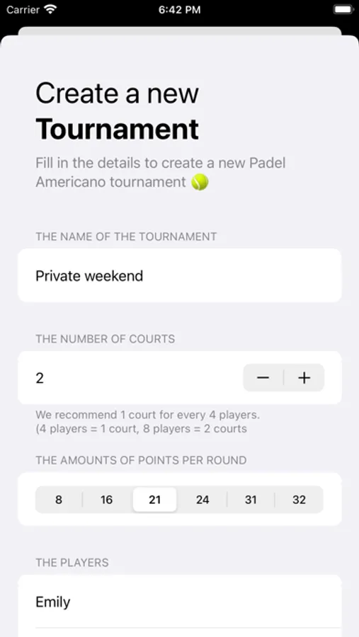 You can use our app no matter how many players you are playing. In contrast to other apps on the market, we have speciallized in creating a tournament generator that can handle low, high or uneven number of players.