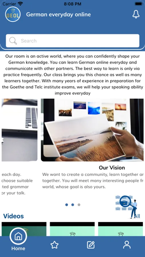 Our room is an active world, where you can confidently shape your German knowledge. You can learn German online everyday and communicate with other partners. The best way to learn is only via practice frequently. Our class brings you this chance as well as many learners together. With many years of experience in preparation for the Goethe and Telc institute exams, we will help your speaking ability improve everyday.