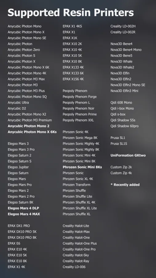 Please note that this app is compatible with a variety of resin MSLA, DLP, and FFF/Filament 3D printers (see the list within the app).