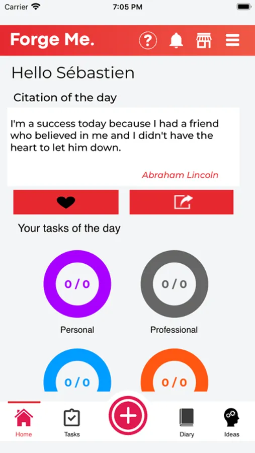 By providing a companion who will guide you on a daily basis, ForgeMe will be your ally in achieving your most seemingly difficult goals. There's nothing magical about it, ForgeMe will help you build habits (probably one of the hardest things in life) and track your goals and progress.