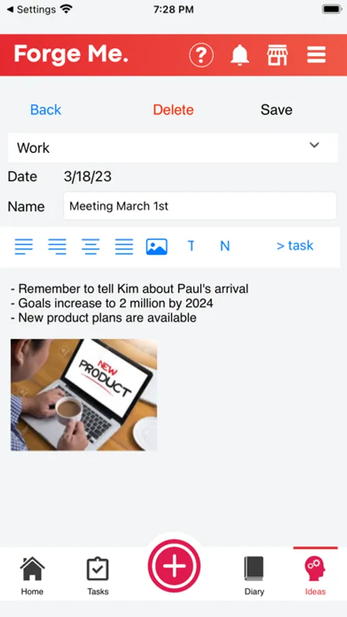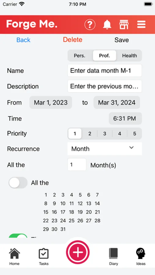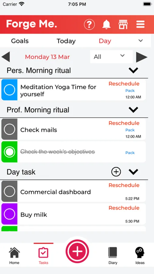Finally, ForgeMe will bring you a last well-being: free your mind. Repetitive or not tasks, goals, important dates that occupy your mental load can be postponed on this application, to allow you to focus on the essential: you.