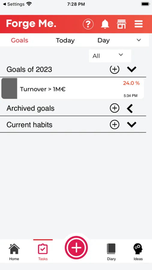 The principle of ForgeMe is to allow you to acquire habits, but also to be able to break down your projects into achievable sub-tasks that you can track. Failure and disappointment in our goals are very often linked to the fact that our goals are not directly achievable. They need to be broken down into several sub-tasks that can be easily and quickly achieved.