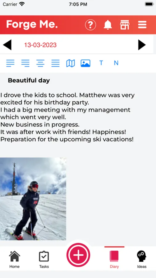 ForgeMe will also allow you to fill in a daily diary of your life. You will be able to print it every year and thus leave your children, grandchildren, a trace of your life and your experience.