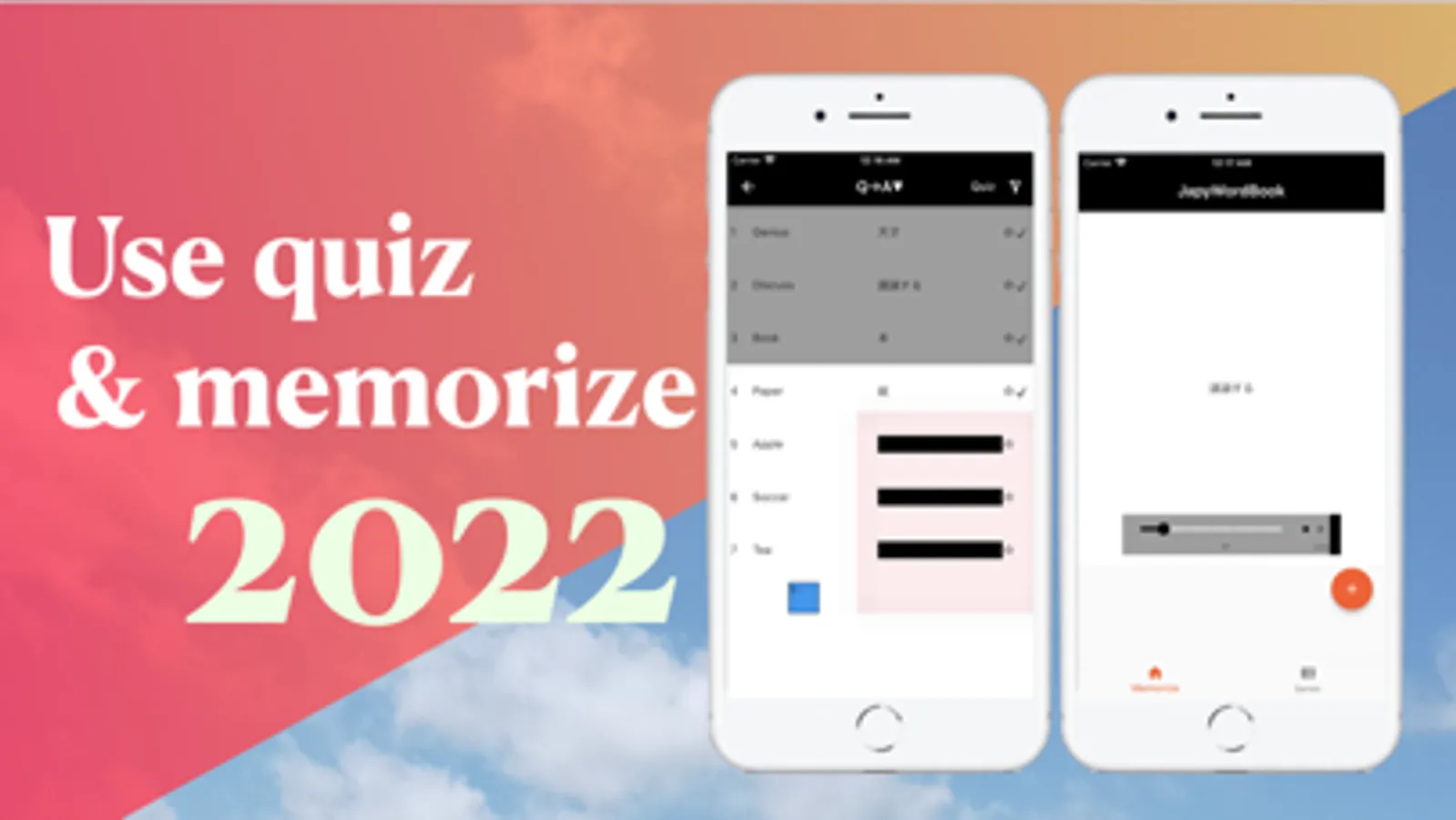 Flashcards application for creating a flash cards by yourself and memorizing your cards easily. You can learn various memorization such as flash cards, sheet learning, and quizzes.