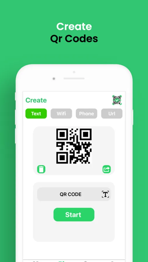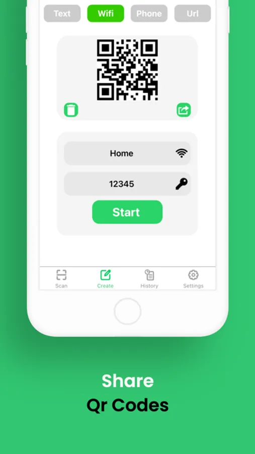 • Select any type like Text, WiFi, URL, or Contact.