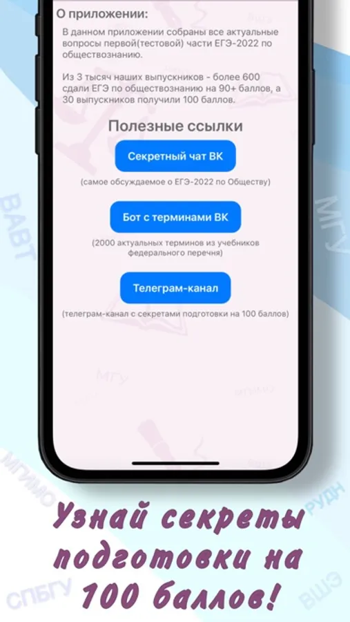 В информационном разделе приложения тебя ждут бонусы в виде полезных ссылок.