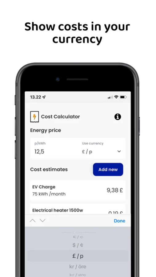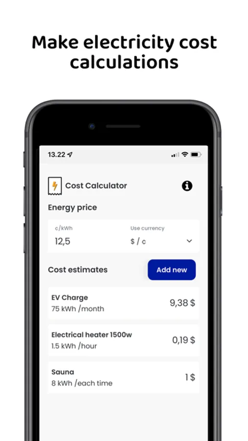 3. Update your current electricity price to see costs (kWh cost)