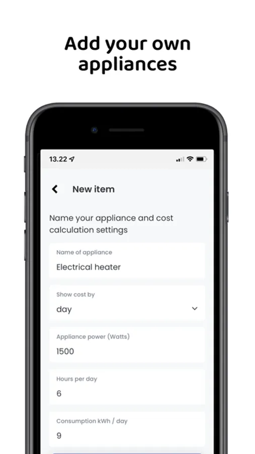 1. Add your own appliances and consumption settings