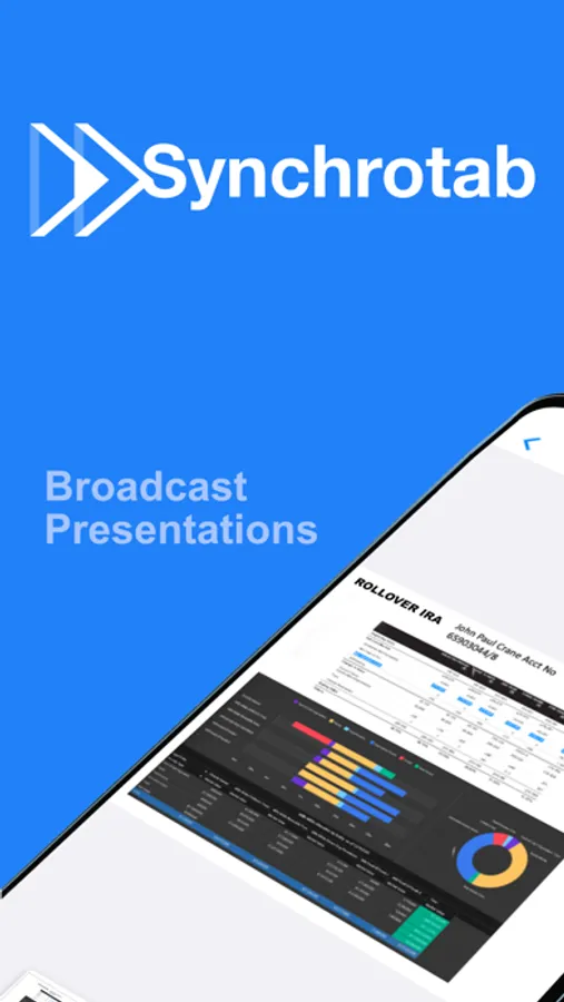 Synchrotab is an IOS app that allows a presenter to broadcast pdf documents on a tablet or iPhone to a group of up to 8 viewer tablets. The devices communicate via peer-to-peer Wi-Fi, thus eliminating the need for a common network access. Time stamped records of materials displayed and active participants is supplied as required, together with embedded meeting notes. The viewer sees a synchronized version of the presenter’s screen with zoom and on-screen mark-up capability. Multiple documents may be uploaded to the primary device memory via email or external file network, allowing immediate access to an entire library of presentations or reports. Synchrotab makes its own statement of sustainability while eliminating costly printing and freight charges. The system was designed in cooperation with a major global investment bank ensuring exacting standards of security and integration with corporate devices.