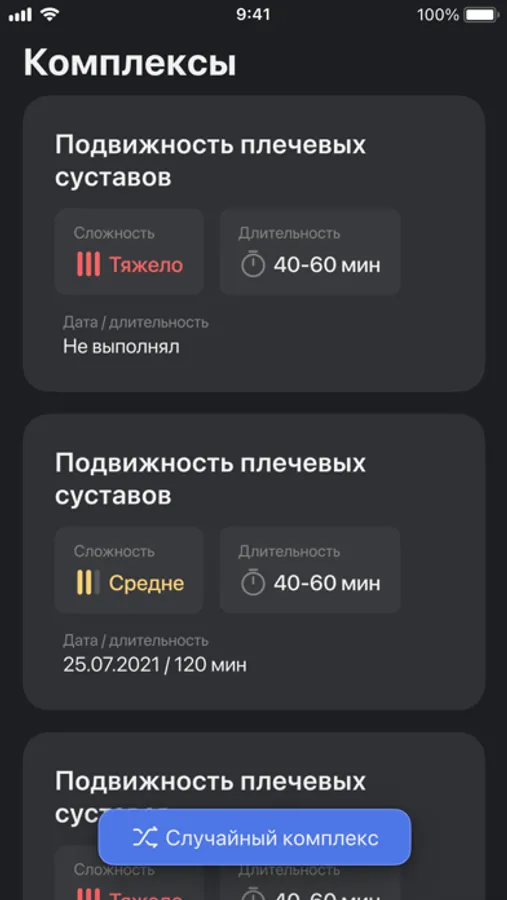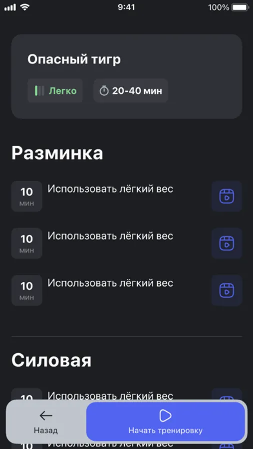 Приложение содержит различные тренировки, включая силовые и интенсивные. Комплексы составлены из личного опыта и адаптированы для разных уровней физической подготовки.