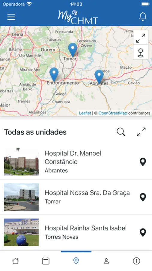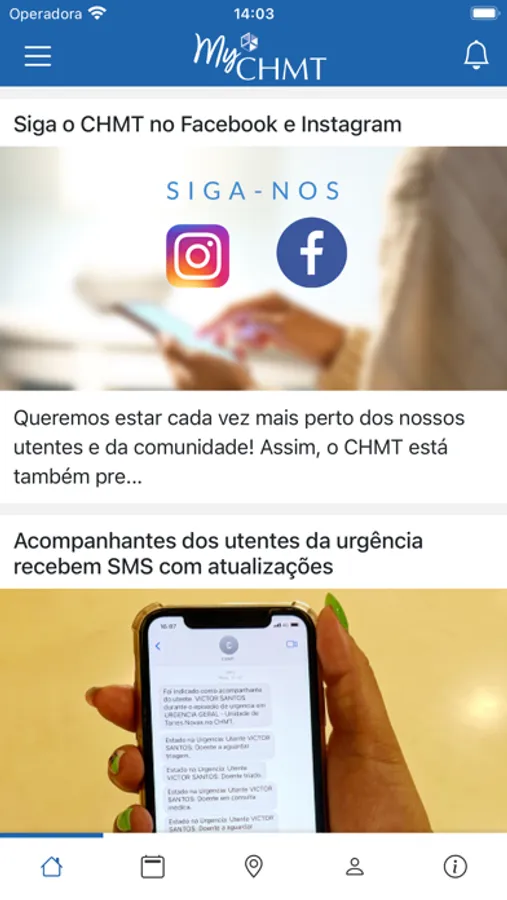 MyCHMT, é uma aplicação do CHMT - Centro Hospitalar do Médio Tejo, onde pode aceder a um conjunto de funcionalidades e informações sobre a sua saúde e processo clínico, comodamente, através do seu telemóvel.