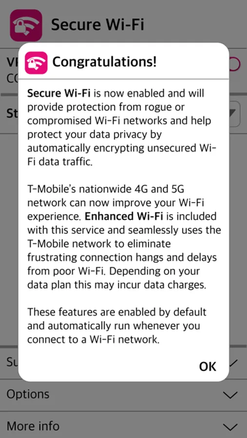 o T-Mobile’s nationwide 4G and 5G network can now improve your Wi-Fi experience. Enhanced Wi-Fi is included with this service and seamlessly uses the T-Mobile network to eliminate frustrating connection hangs and delays from poor Wi-Fi. Depending on your data plan this may incur data charges.
