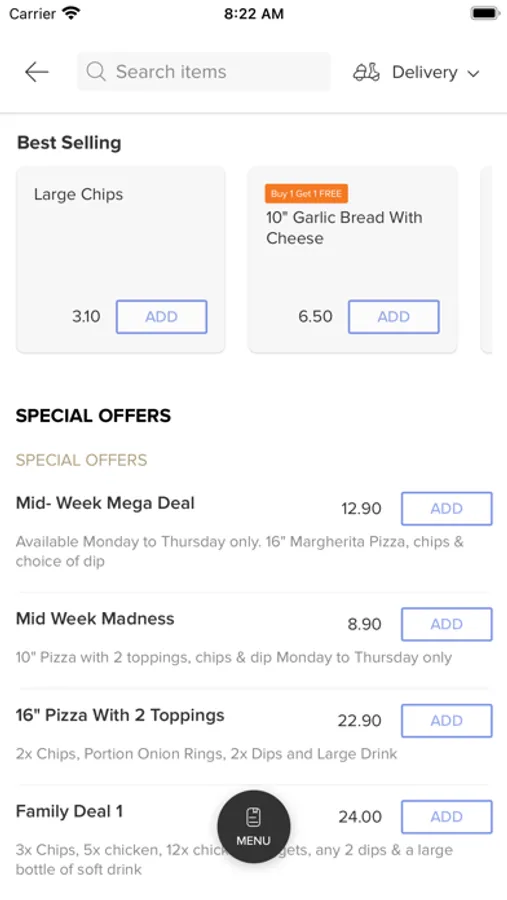 We serve a variety of food such as pizzas, burgers, wraps, kebabs and more. You can find our whole menu on our app, filled with mouth-watering dishes and catering for all kinds of different tastes!