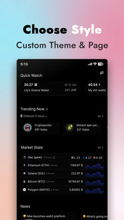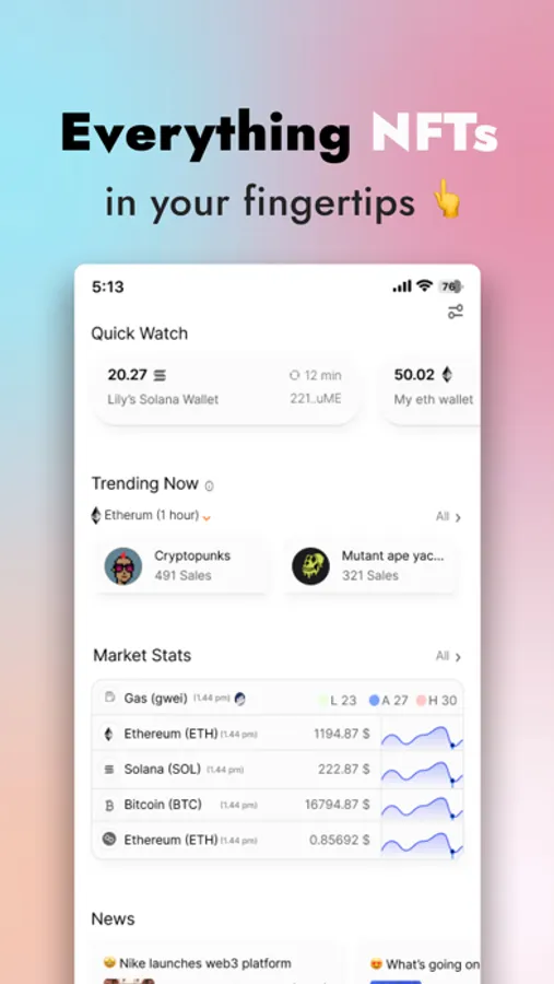 - It features NFT collection details, wallet watching, and a view of trending NFTs.