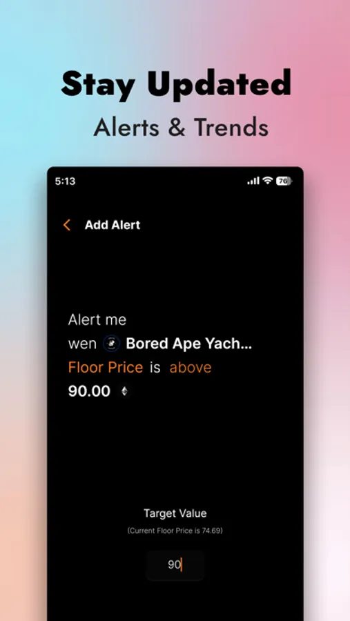 Just enter your public ETH address and watch the floor prices of all the NFTs from Opensea. Soon we will integrate Solana NFTs from Opensa and MagicEden.