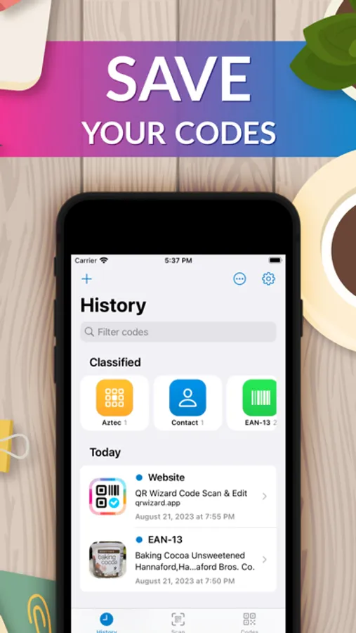 QR Wizard understands the importance of keeping your scanned and created codes organized. With its built-in code library, you can easily save and categorize all your scanned and created codes for future reference. Whether you need quick access to a code for sharing or want to revisit a code you scanned months ago, QR Wizard's organized library ensures you can find what you need when you need it.