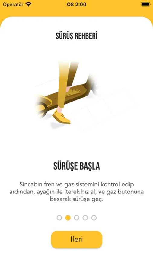 + Bir ayağınla iterek harekete geç ve gaz mandalı ile sürüşe devam et.