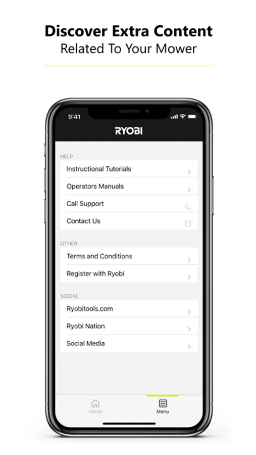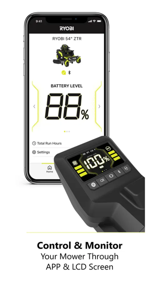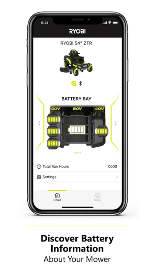 The RYOBI™ Riding Mower App pairs to your compatible RYOBI Riding Lawn Mower allowing you to easily monitor your RYOBI™ 80V Riding Mower right from your phone. The App lets you access all necessary information about your riding mower and gives access to helpful guides and tutorials.