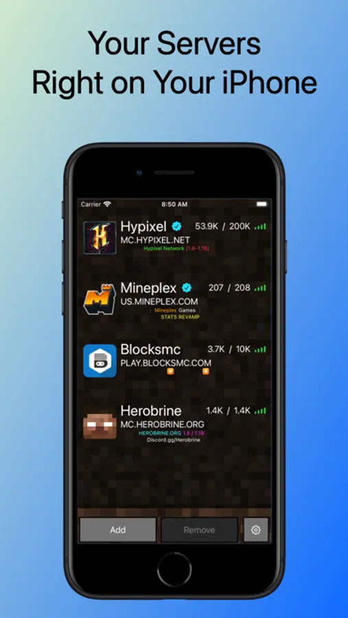 Add your favorite Minecraft servers right on your iPhone. Not a single ad. That's MCSS.