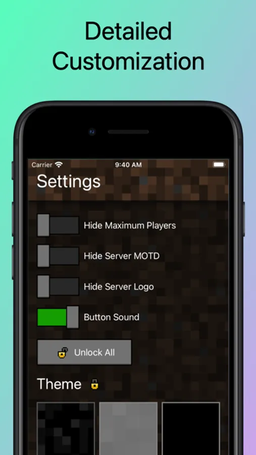 Consider supporting the developer by unlocking all of the extra cosmetic features within the app, including custom server names, light and dark themes, and more!