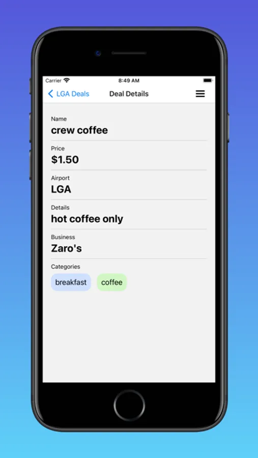 Crowd sourced crew meal information for airline pilots and flight attendants.