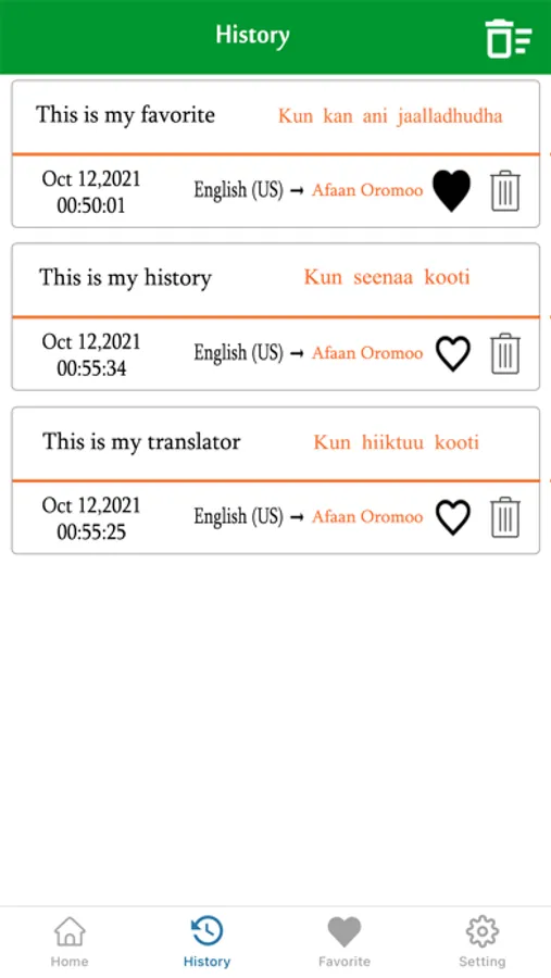 * Oromo To English Translator And English To Oromo Translation is a must have app for any traveler around the world. you will have access to the best languages packs and voice recognition in the world within your device that you can carry anywhere you go. this language app is designed for many purposes in mind including: everyday conversation, traffic signs, maps, local news, business languages, academic papers, and so on. with just a few taps on your device you will be able to understand most written and spoken words in the language you are not familiar with. it will greatly assist you in communicating with the locals.