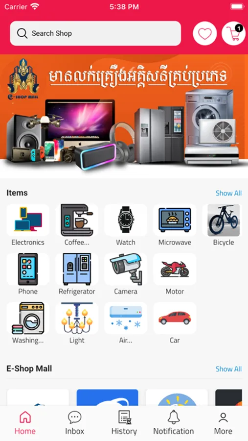 E-Shop Mall is e-commerce platform in Cambodia. Our main goal is to distribute local goods to the entire country. Contact us for more information.