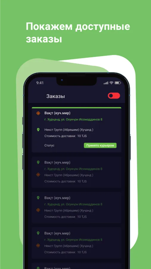 Приложение Livo Driver предназначено для курьеров, желающих работать в службе доставке Livo Go. С помощью данного приложения курьеры могут принимать заказы на доставку, строить оптимальный маршрут и отмечать выполнение заказа. Также в данном приложении имеется история заказов, где курьер может посмотреть свои предыдущие заказы или заказы конкретной даты.