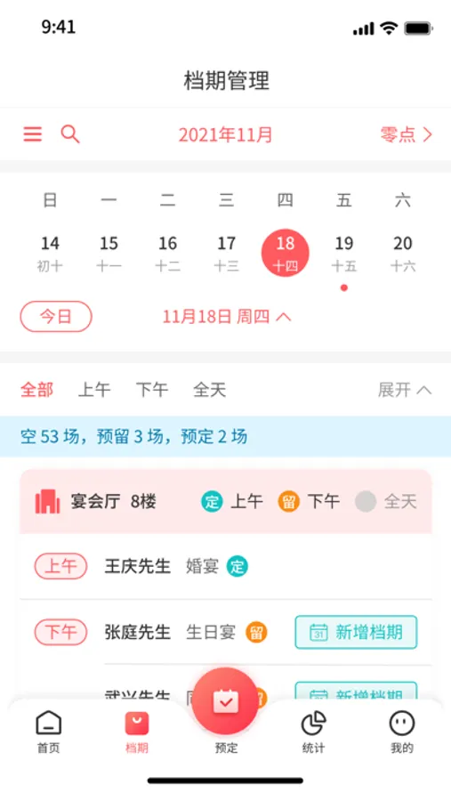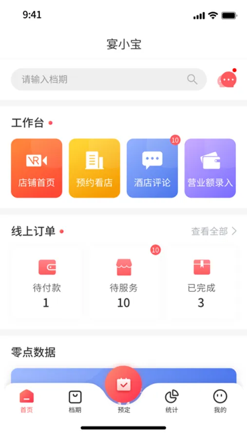 餐饮宴会酒店+一站式婚礼堂专业数字化营销运营管理系统;集成了CRM客户管理、智能跟进提醒、宴会订餐本、场地管理、场地档期管理、商家独立小程序、演职人员资源管理、订单管理、合同管理、销售数据分析、运营数据分析等为一体的一站式宴会系统。随时随地管理宴会厅、会议厅、包厢及雅间,记录客户预定信息,包括锁定的日期、餐厅、预付定金、桌数及其他信息。