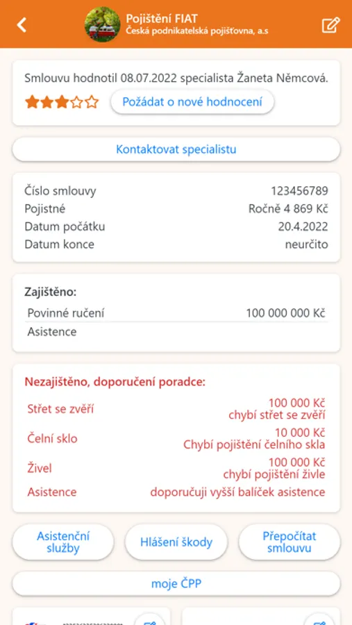 All contracts simply and conveniently in one place. And what benefits will you get with our Acemo app? In your contracts, you can navigate according to the colored traffic lights, you can change the background, for example, by inserting a photo of your own car, complete any contract documents, share contracts with family and friends, save a reminder and easily check, for example, the MOT or the validity of the highway stamp . And much more.