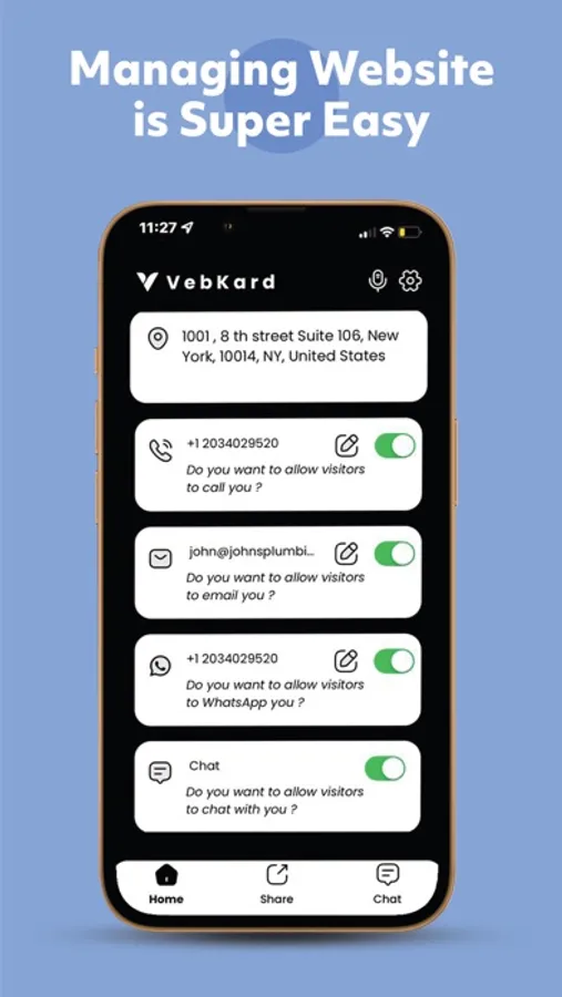 With VebKard, you can easily reach more leads, build a professional image, and connect quickly with your prospects. Plus, you'll be able to access your website from anywhere and anytime via your phone.