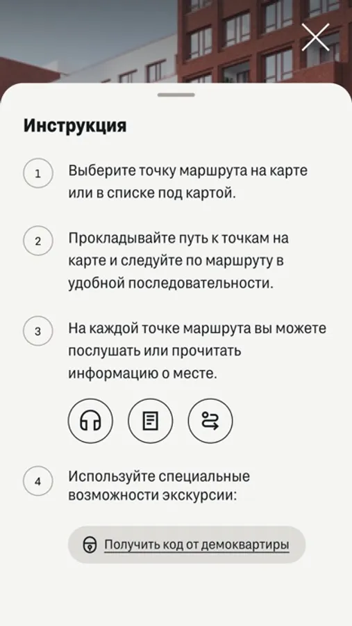 Отправляйтесь на прогулку по готовым домам Брусники вместе с аудиогидом или пройдите виртуальную экскурсию, не выходя из дома. Во время маршрута мы зайдем во двор, подъезд и демоквартиру.